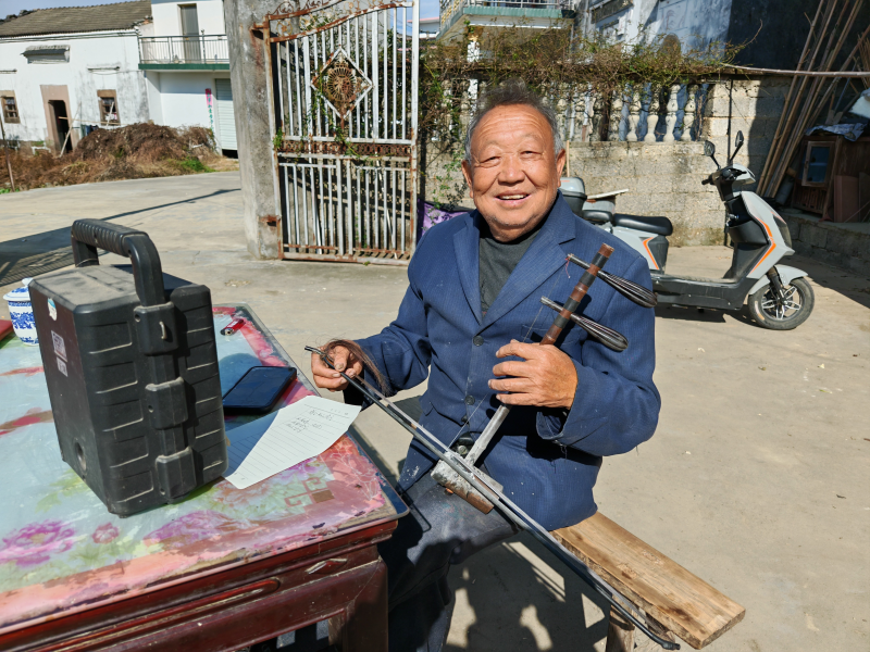 近日,在一位祖籍休宁县五城镇阳台村的干部陪同下,我们走进风光秀丽的阳台村,探寻一段跨越两代人的京剧传承故事。刚到村口,便见76岁的项世武坐在自家门前的长凳上,沐着暖阳拉起京胡,一段《智取威虎山》的旋律悠扬婉转;不远处的项世文家中,80岁的老人正对着电视机凝神观看京剧选段,指尖不自觉地跟着节拍轻叩桌面。