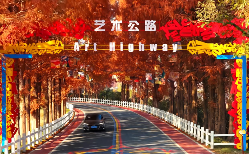 横江水畔,昔日废弃的破旧公路焕新为一条五彩缤纷的“艺术之路”:700多米的公路两旁,上千棵火红的水杉如仪仗队;数十幅摄影、油画作品悬挂枝头,构成自然与艺术相交融的“林间画廊”;3D彩绘、艺术涂鸦、现代雕塑等20多处景观小品散发着时尚气息。游客们或写生作画,或摄影出片,或徜徉其间尽享冬日惬意时光。
