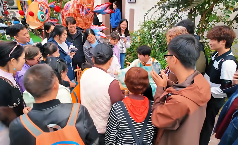 在“齐云逍遥街”,游客沉浸在逸趣横生的文旅互动场景演艺中。