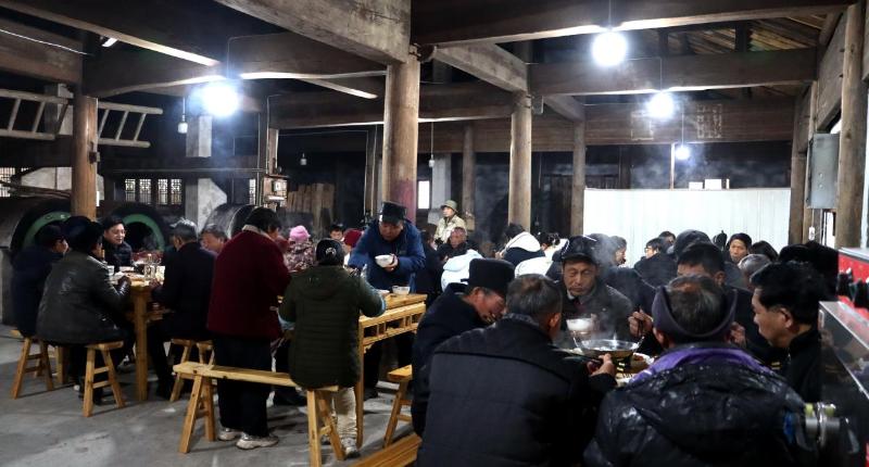 说干就干,一个多月前,张裕亮等人就张罗开了,养老中心就选在村中20世纪60年代建的老茶厂,场地较大,一半置放茶机,一半作为餐厅,边上的房子作为厨房。添置冰箱、蒸饭柜、燃气灶等部分厨房设备,砌筑了柴火灶。并多次召开村民会议,征求大家意见,明确餐饮标准及收费标准。凡90岁以上的老人免费,60岁以上的,每天只需支付6到10元,即可满足一日三餐之需。很快,在新年前夕,就有20多位村民主动缴费,加入这一抱团养老中心。许多年轻村民表示要义务帮忙,并捐款捐物。张裕亮还领来了营业执照和卫生许可证。