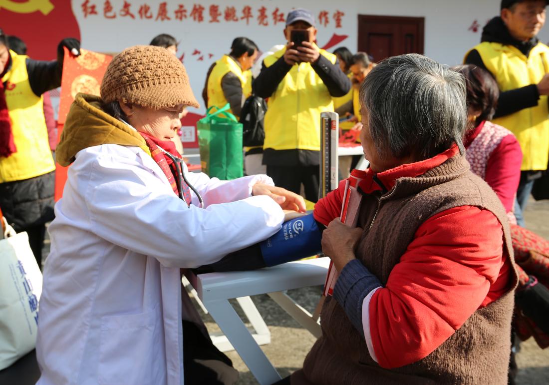 200多平方米的展示馆大院里,红彤彤的春联与精巧的窗花相映成趣,村民们围在书桌旁,捧着刚到手的“墨宝”笑逐颜开;另一侧的义诊区前,老人们有序排队,医务志愿者细心测量血压、耐心解答老年常见病护理疑问。“听说这里有义诊和写春联,特意从白际乡赶过来。”一位年事已高的大娘一边接受检查,一边向志愿者连连道谢。提前弥漫的年味里,志愿服务的暖流让寒冬更显温情。