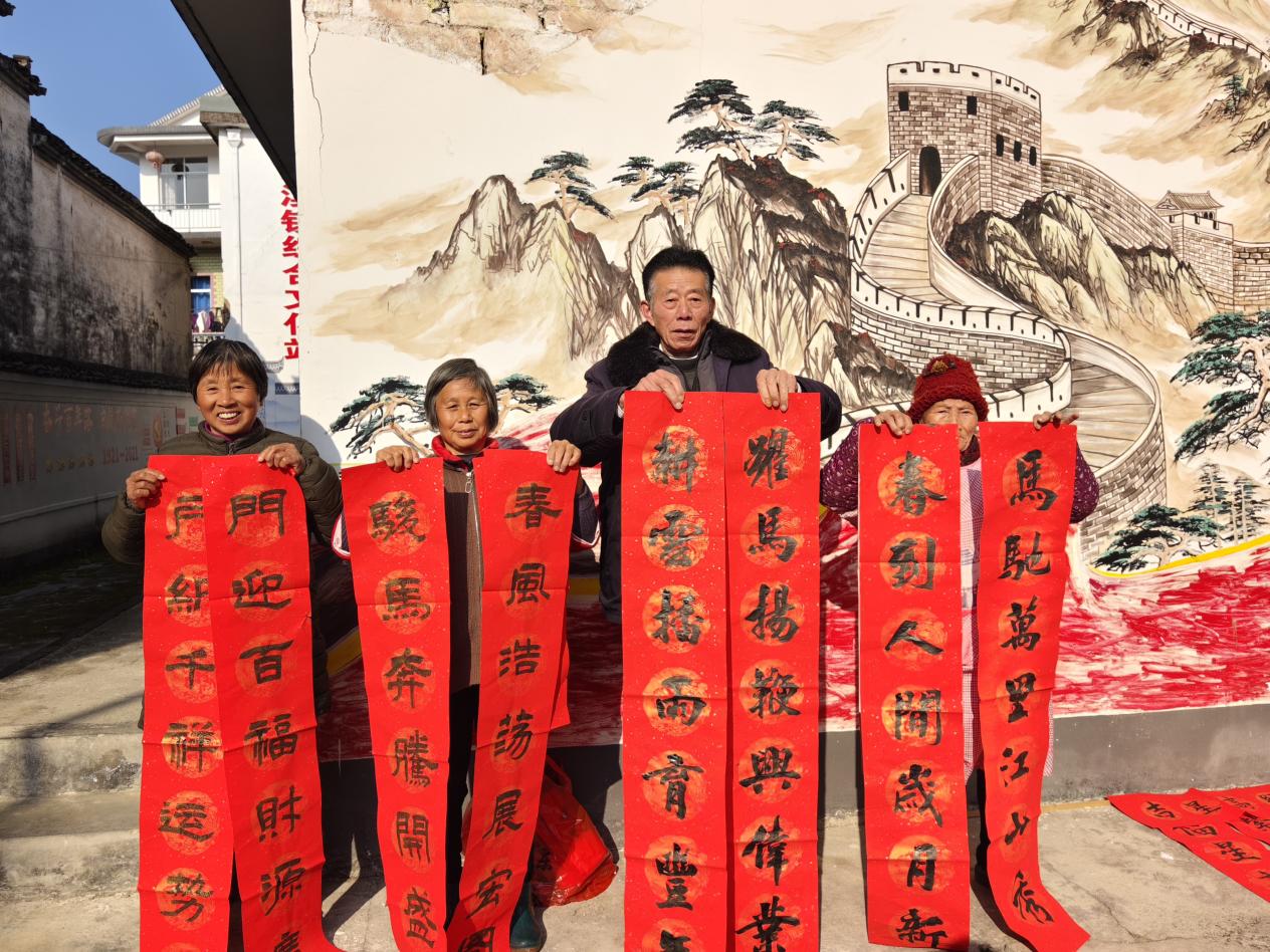 骏马迎春歌盛世,执鞭奋进耀中华。近日,休宁县东临溪镇汊口村暖意融融,红色展示馆内年味渐浓。休宁县关工委五老松志愿服务团队的40名志愿者齐聚于此,为当地群众送上写春联、剪窗花、健康义诊等“新春礼包”,更有“中国好人”姚华亮带队参观红色展示馆。活动现场,4位优秀志愿者分享服务心得,用初心故事传递奉献力量。