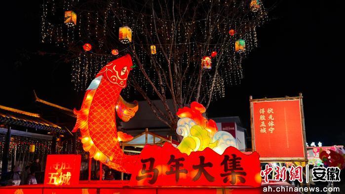 2月7日晚,安徽省黄山市休宁县五城镇集镇街道灯火通明,春节氛围日益浓厚。