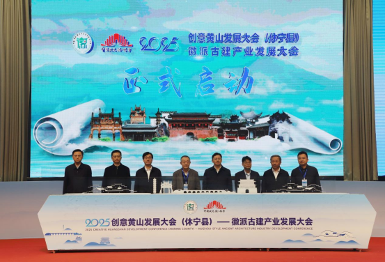 传承徽派文脉,产城融合发展。12月12日,2025创意黄山发展大会(休宁县)——徽派古建产业发展大会在我县东临溪镇黄山润一生态园隆重开幕。副市长程寄县,住建部原总规划师、中国城市规划协会会长唐凯,住建部中国建筑文化中心副主任李剑,住建部历史文化保护处处长胡敏,安徽省住建厅党组成员、副厅长赵新泽,北京建筑大学党委副书记、校长张大玉,县委书记、县长唐进,市住房和城乡建设局党组书记、局长张凡出席并共同启动2025创意黄山发展大会(休宁县)——徽派古建产业发展大会。