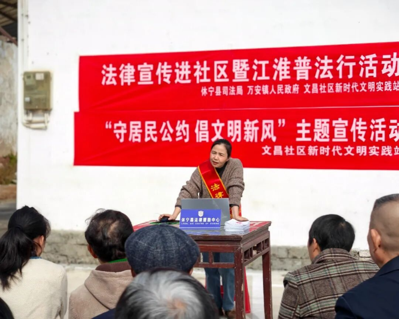 活动现场人头攒动,群众参与热情高涨,充分彰显了对法治服务的迫切需求。文昌社区、休宁县司法局法律援助中心、万安司法所组建“普法小分队”,立足各自职能发挥专业优势:社区牵头统筹、精准对接群众需求,法律援助中心聚焦帮扶、传递法治温情,司法所深耕基层、解读民生政策,三方联动形成普法合力,让法律服务触手可及。
