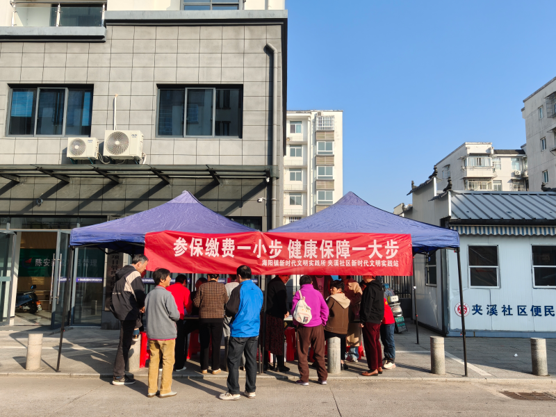 为扎实做好2026年度城乡居民基本医疗保险参保缴费工作,提升辖区居民政策知晓率和参保积极性,11月15日上午,夹溪社区新时代文明实践站联合海阳镇新时代文明实践所,在社区便民服务亭开展“参保缴费一小步 健康保障一大步”活动,将医保惠民政策送到居民“家门口”。