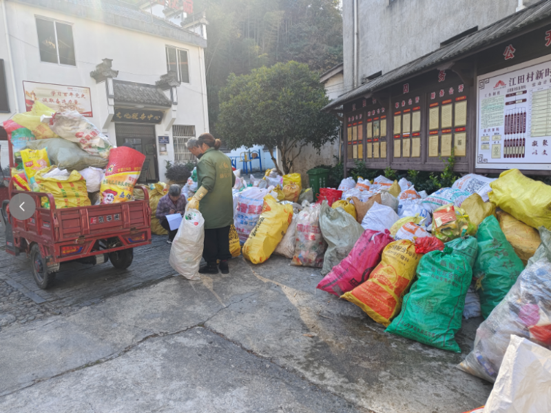 江田村的生态美超市,让不起眼的生活垃圾有了“身价”,更悄悄改变了村里的模样:过去路边、墙角偶尔堆着的杂物不见了,石板路扫得干干净净,屋后的竹林里也再没了乱扔的塑料瓶。