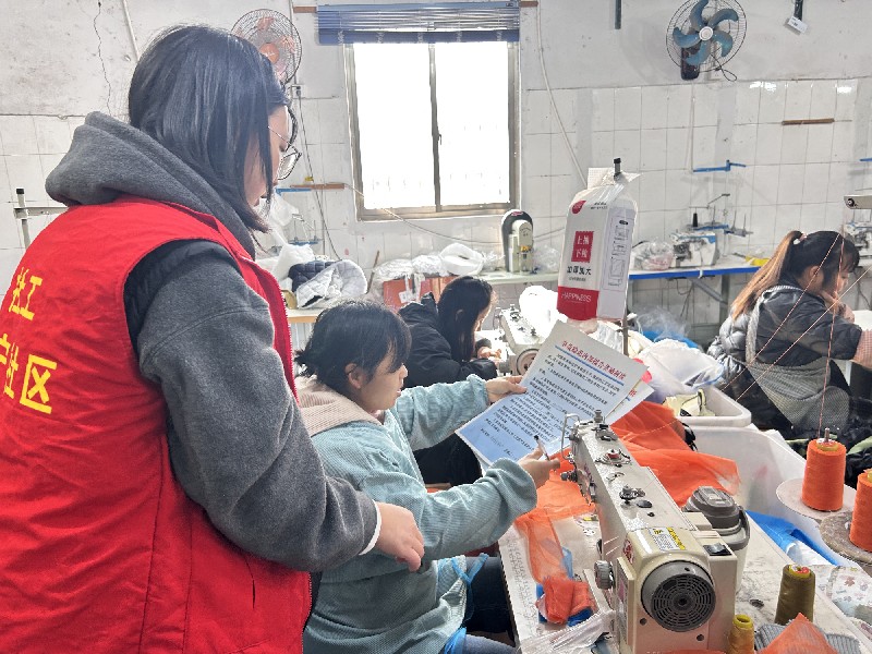 服装厂内纺织品原料集中,用电设备多,消防安全尤为重要。社区工作人员逐厂走访,与服装厂负责人、一线员工面对面交流,结合服装行业布料易燃、用电设备密集的行业特性,重点讲解电器线路规范布设、消防器材正确使用、火灾初期应急处置等安全知识。同时,工作人员在车间显眼位置、员工休息室、配电室等区域,粘贴安全宣传单页,以图文并茂的形式提醒大家时刻绷紧安全弦,及时排查用电设备老化、私拉乱接等安全隐患。