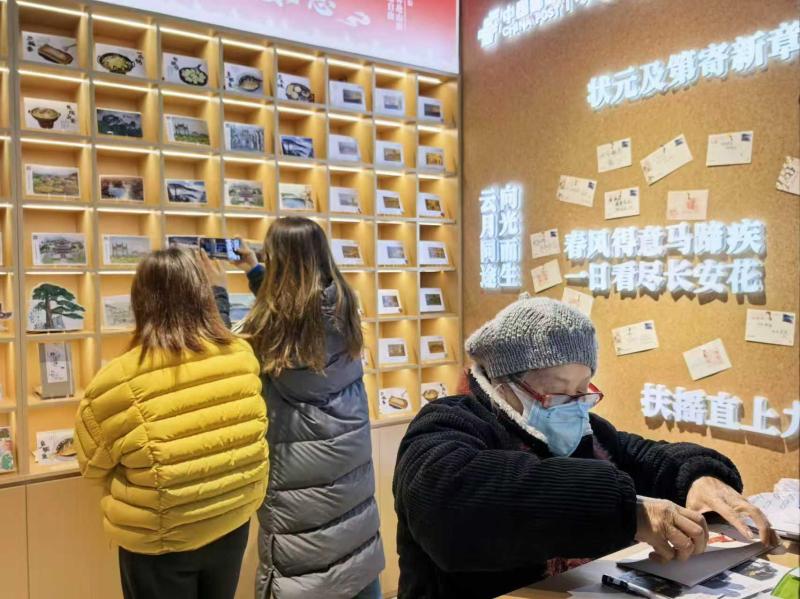 本次活动的主角是《丙午年》特种邮票,以矫健奔马为主体图案,巧妙融合传统绘画技法与时代审美,在方寸之间承载着“马到成功,金榜题名”的吉祥寓意。而本次活动最引人注目的亮点,莫过于状元邮局的正式开业。邮票首发并未局限于仪式环节,而是与状元邮局的体验功能紧密结合。作为一个融合了状元文化体验、主题邮品展销与互动打卡功能的复合空间,在这里,游客不仅可以选购独家设计的状元主题纪念封、明信片,还能现场书写祝福、加盖特色邮戳,即时书写邮寄,将“状元及第”的美好祝福投递去远方。邮局内设置的“状元榜”祈福墙,更成为人气打卡点——提笔留愿,拍照留念,感受状元文化的魅力。