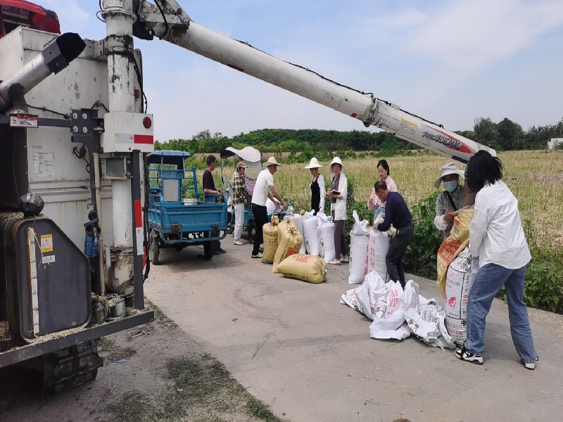 5月15日,潜阜村70多亩的集体油菜田里,2台收割机在机手的熟练操作下,在田间来回穿梭作业,一排排油菜杆伴随着“隆隆”的声响应声倒下,碎末飞扬,一粒粒油菜籽顺着出口倾泻而下,农民们忙着装袋、上车,现场一派繁忙景象,空气中弥漫着丰收的喜悦。