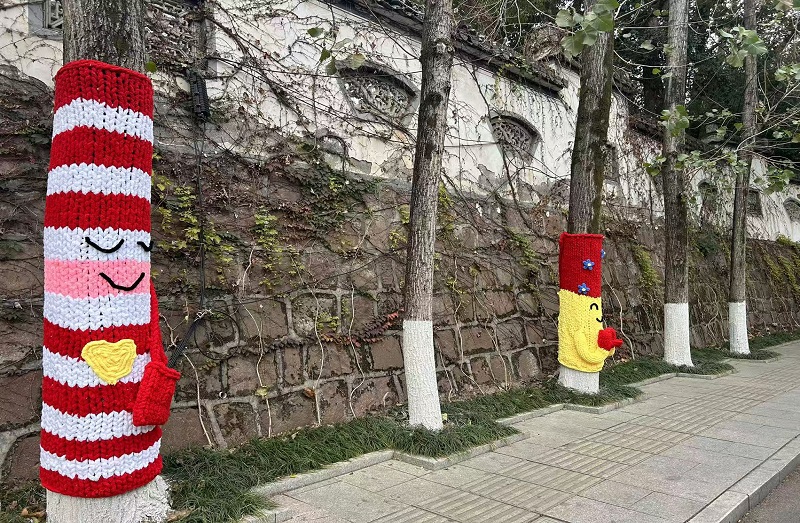 横江路作为展示城市形象、服务居民生活的重要街区,本次改造秉持“微改造、精提升”理念,在前期实地调研和征集居民意见基础上,结合该路段周边幼儿园、小学集中的特点,本次改造注重融入童趣元素,为横江路20棵行道树“穿上”色彩丰富、图案多样的“毛衣”。这些毛衣不仅风格活泼、富有创意,添加了手臂、爱心等趣味图案,也切实起到防寒保暖作用,帮助树木抵御低温。改造完成后,横江路沿线行道树焕然一新,五彩斑斓的树身成为街头亮丽一景,吸引不少家长与孩子驻足观赏打卡。