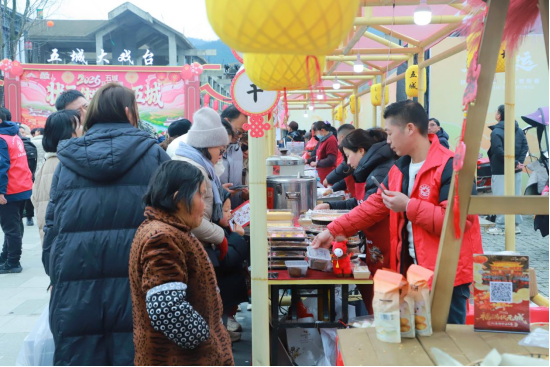 走进五城街区,街市上熙熙攘攘,红灯笼营造喜庆气氛,百余摊位沿街排布,农副产品的鲜香、非遗技艺的匠心、民俗演艺的欢腾在市集交融,叫卖声、欢笑声此起彼伏,尽显“徽州小吃第一镇”的独特魅力。