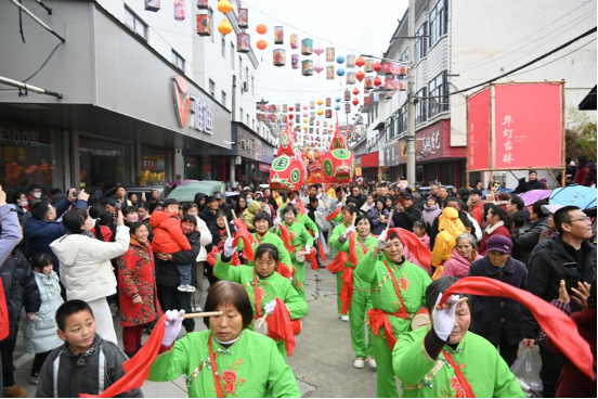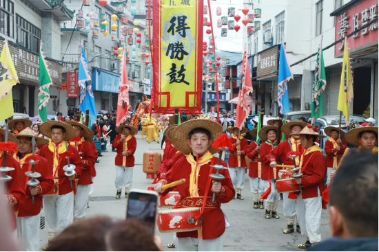 “咚咚咚,锵锵锵……”当天上午,非遗“得胜鼓”铿锵奏响,舞龙表演灵动上演,特色鱼灯巡游其间,群众自发加入,沉浸式感受传统的独特韵味,唤醒心底的新春记忆。