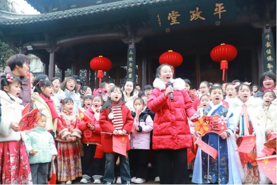 上午10时整,活动正式拉开帷幕。平政堂前,大家整齐列队,齐声诵读《笠翁对韵》,抑扬顿挫的书声在古建庭院中回荡,平仄之间皆是经典的魅力。“春”字飞花令环节,孩子们踊跃抢答、各展才情,“春眠不觉晓”“春风又绿江南岸”“二月春风似剪刀”…… 一句句咏春诗词脱口而出,欢声笑语间这场趣味诗词互动成为孩子们专属的新春文化课堂。