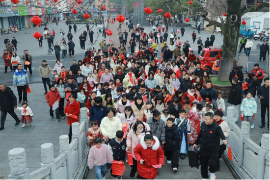 走进状元博物馆,悠扬的新年乐声萦绕耳畔,城门楼朱砂启智仪式吸引众多群众驻足,启智人手持朱砂,为孩子们轻点眉心,一抹朱红印在眉间,寄托着开启智慧、学有所成的美好祝愿。