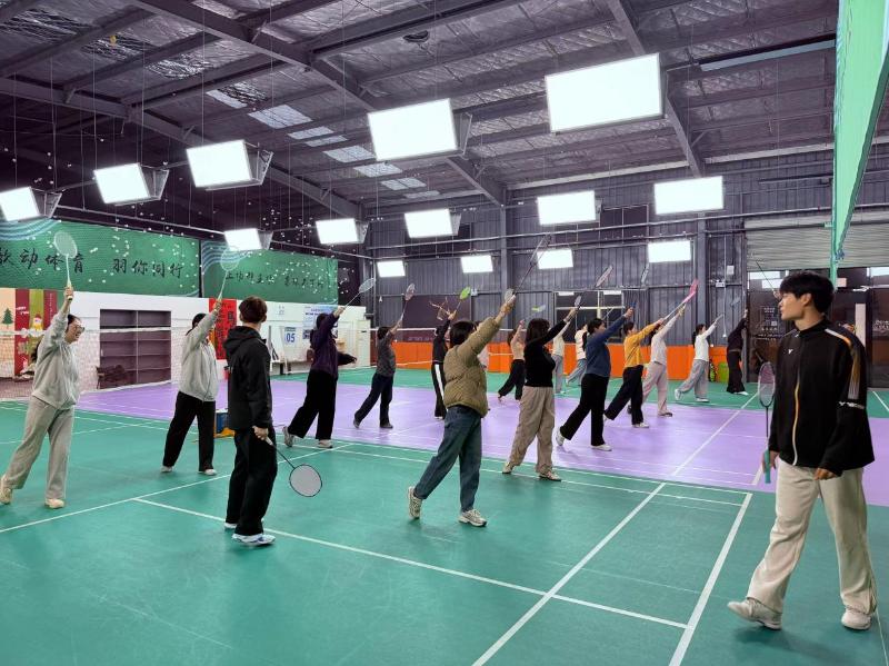 本次羽毛球班一经公众号发布便备受追捧,共吸引20余名青年参与。本期课程共设10节课,定于每周四晚7:00—8:30授课,配备专业教练现场教学,培训内容系统全面,涵盖高远球架拍挥拍、正反手发球、网前搓球挑球等实用技巧,由浅入深、循序渐进,兼顾零基础和有一定基础的青年学员。课堂上,教练耐心示范、细致教学,学员们全神贯注、认真练习,在挥拍跳跃中舒展筋骨、释放压力,现场洋溢着朝气蓬勃的青春气息。