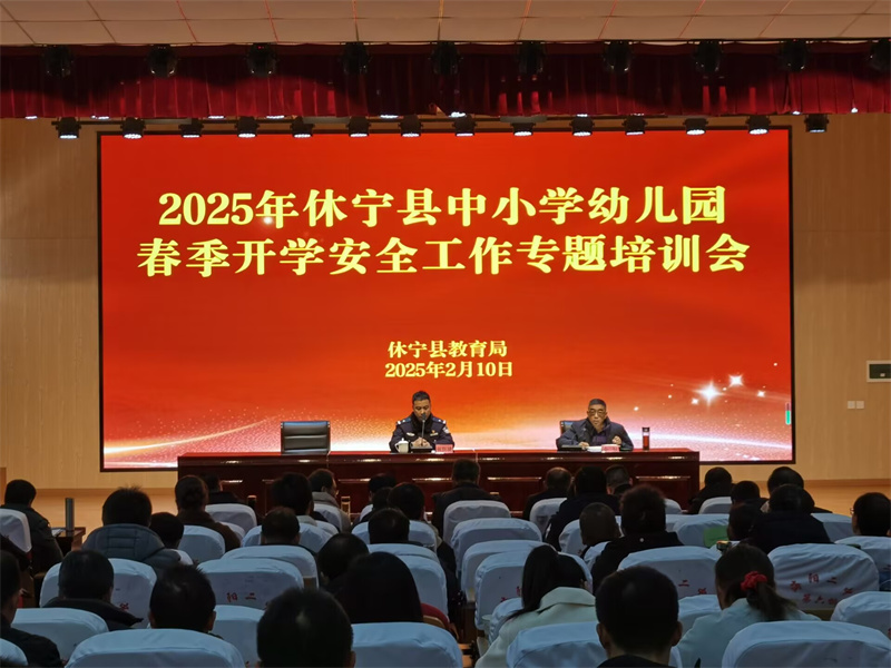 为全面加强校园安全管理,提升休宁县中小学、幼儿园安全防范能力,切实保障师生健康与校园稳定,2月10日,休宁县教育局邀请县公安局、县市场监管局、县卫生健康委等部门专家,开展全县中小学幼儿园安全工作专题培训。全县各校(园)长、分管安全负责人及安全员等100余人参训。