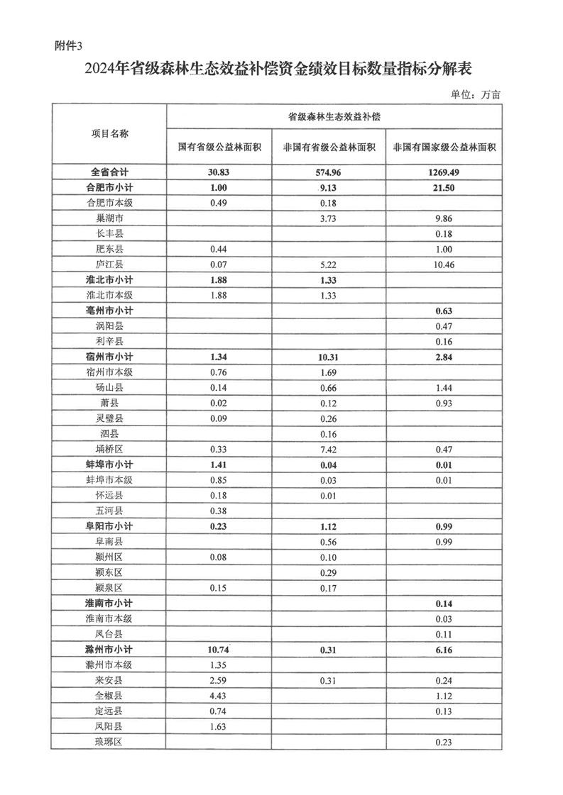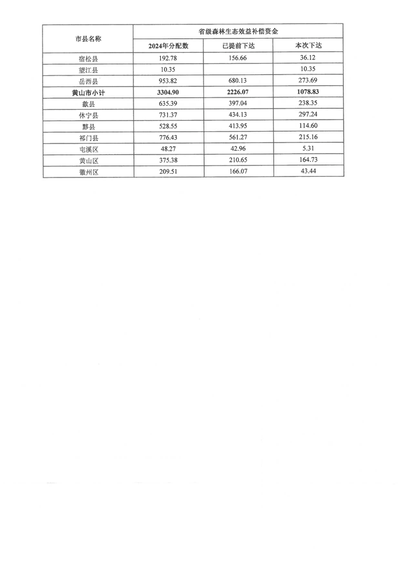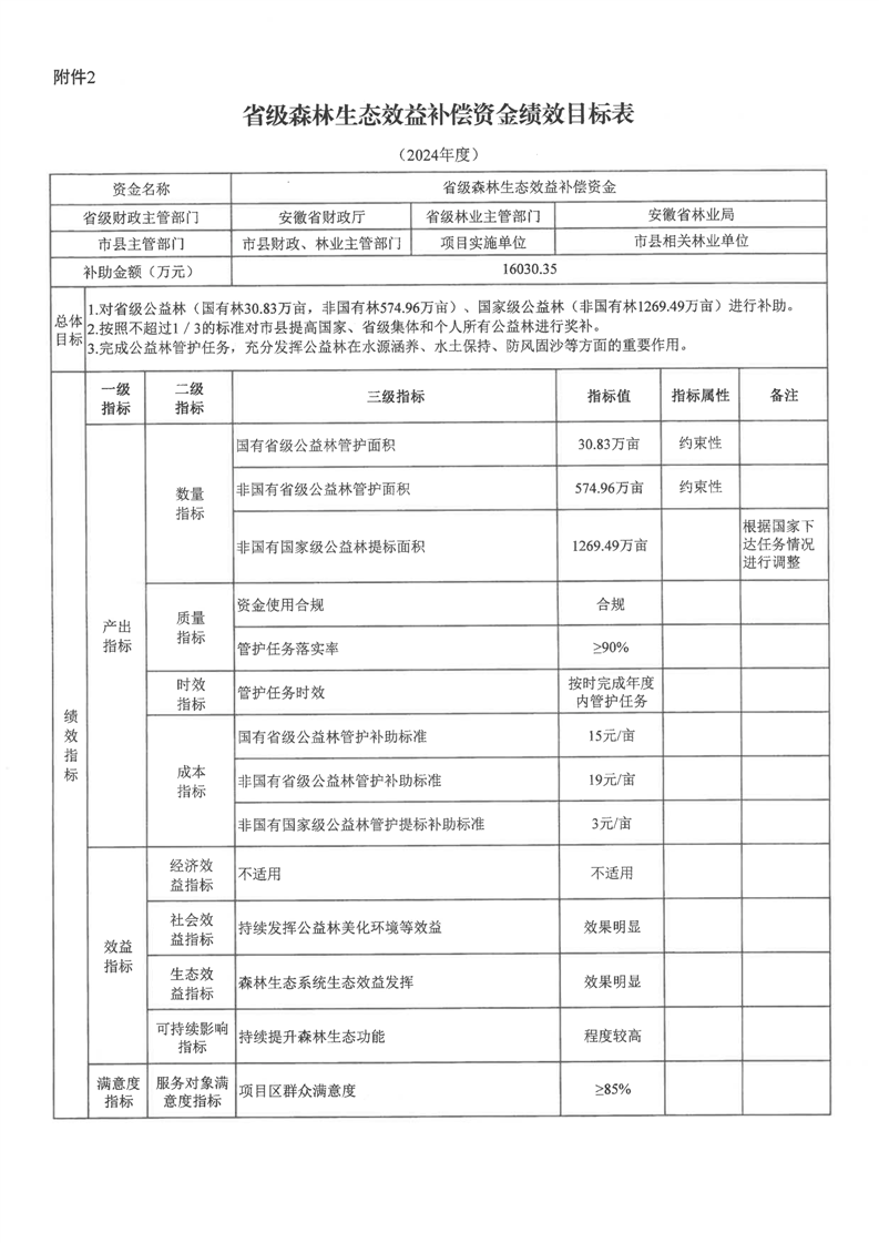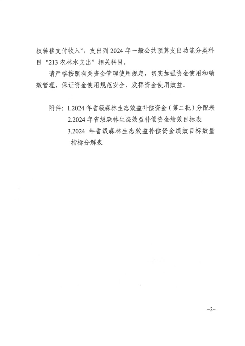 安徽省财政厅 安徽省林业局关于下达2024年省级森林生态效益补偿资金(第二批)的通知
