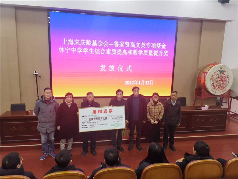 近日,“上海宋庆龄基金会鲁家贤高文英专项基金休宁中学质量奖”颁奖仪式在休宁中学隆重举行。学校党总支书记宋新田主持。县政府副县长冯腾海,县教育局局长王一真和休宁中学领导班子成员及部分师生代表参加了仪式。