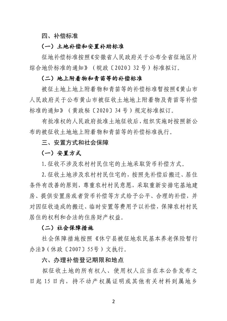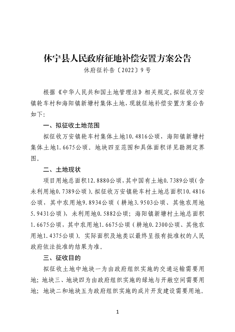 休宁县人民政府征地补偿安置方案公告 休府征补告 〔2022 〕 9号