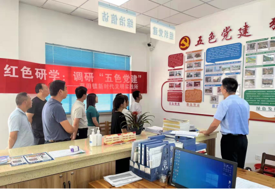 团队一行人先后赴海阳镇盐铺村、齐云山镇环居村和溪口镇长丰村实地了解乡村振兴农播讲堂运营、“五色党建”品牌成果和乡村振兴产业园建设等情况,深入学习“五色党建”工作模式和创新做法。