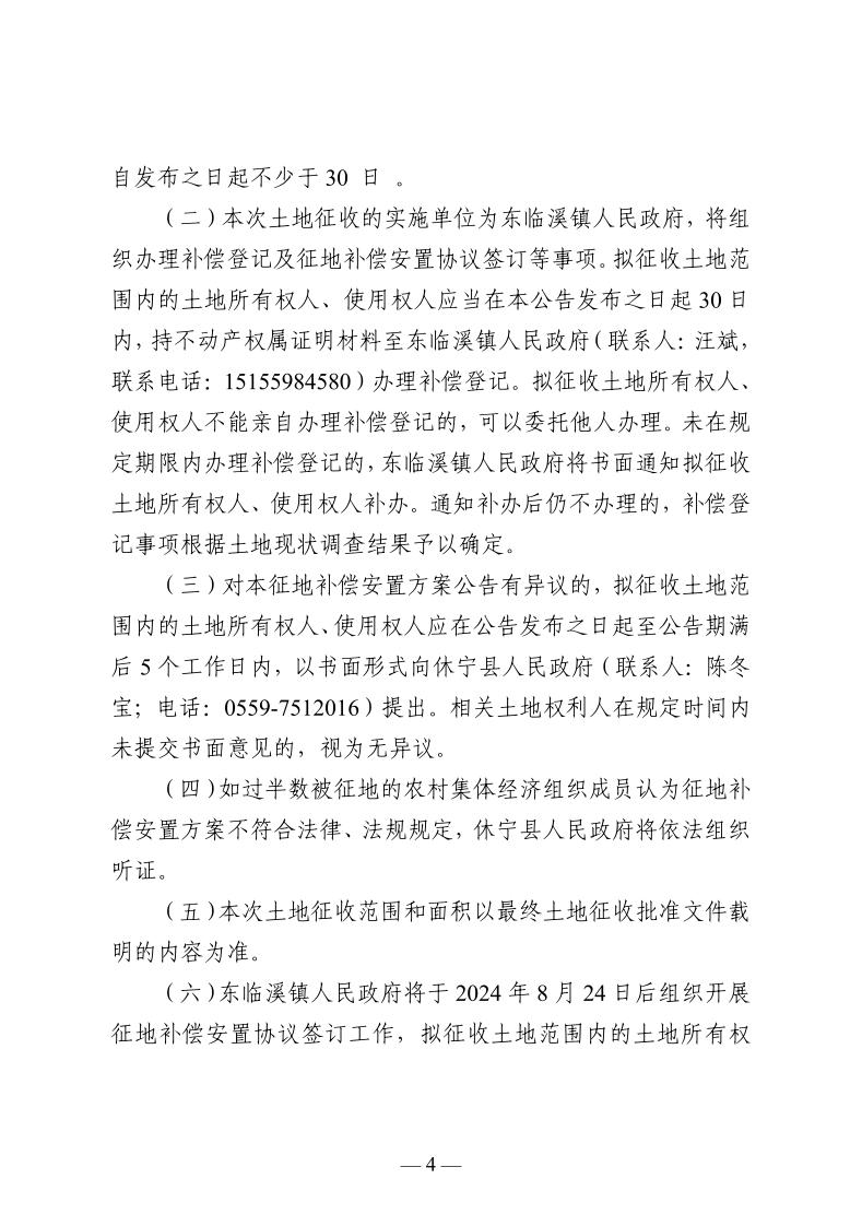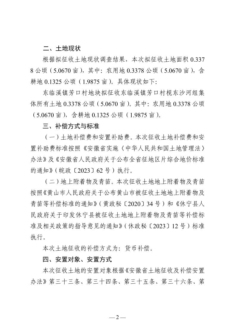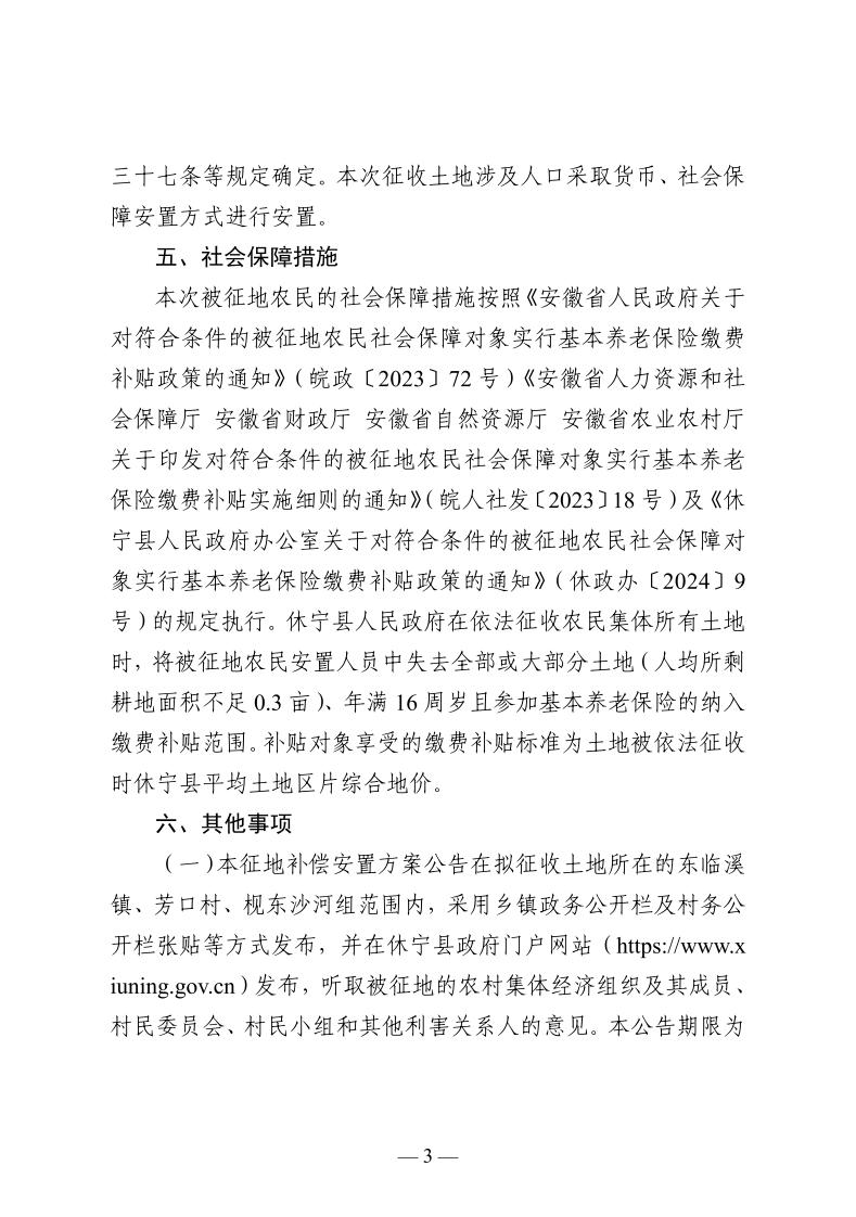 休宁县人民政府征地补偿安置方案公告 休征补安置 〔2024〕 10号