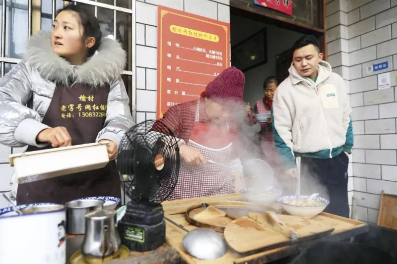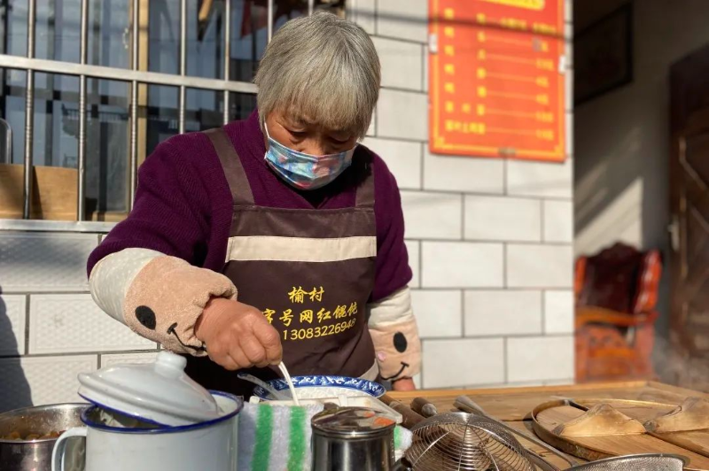 如果你想在榆村寻找一份儿时的记忆,那么可以穿过榆村河街,踩着支离破碎的石板路,听着水埠头响起的啪啪声,看着沿河河廊亭的靠背长凳上的迟暮风光,走到遐迩闻名的榆村老字号馄饨,品尝一碗飘香十里的柴火馄饨。