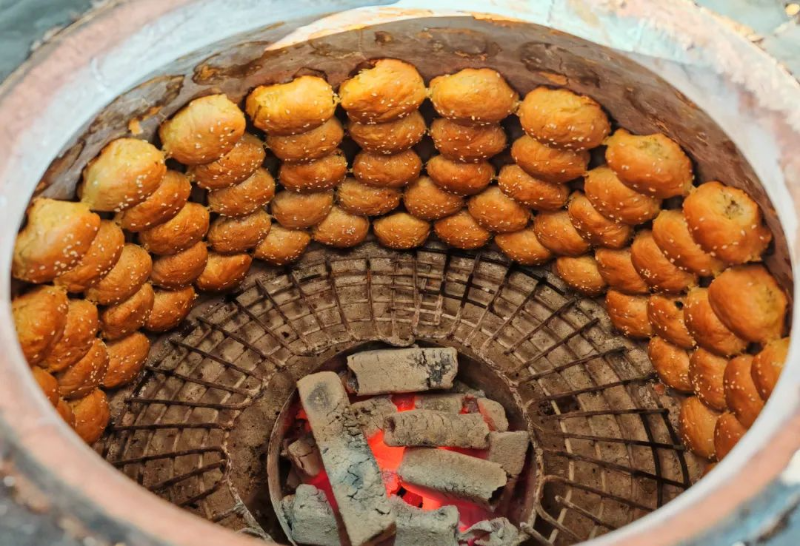 黄山烧饼的制作工艺极为精湛。从和面、揉面到擀饼、烘焙,每一道工序都需精心操作,才能制作出色泽金黄、酥脆爽口的烧饼。特别是烘焙环节,更是讲究火候的掌控,既要保证烧饼的酥脆,又要避免过火导致的焦糊。这种精湛的制作工艺,是黄山烧饼能够流传至今的重要原因。