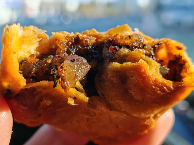 不要小瞧这个烧饼,它的独特口感直到今天还被人们追捧,成为安徽黄山最强美食之一。“黄山烧饼”盛行于古徽州及其周边地区,素有“中国状元县”美誉的休宁县,做烧饼的传统作坊、卖烧饼的百年老店星罗棋布。当地人采用上等的精面粉、肥膘肉、梅干菜、香芝麻、精制盐、菜籽油等绿色原料,经泡面、揉面、搓酥、摘坯、制皮、包馅、收口、擀饼、刷饴、撒麻、烘烤等 10 余道工序制成而成。