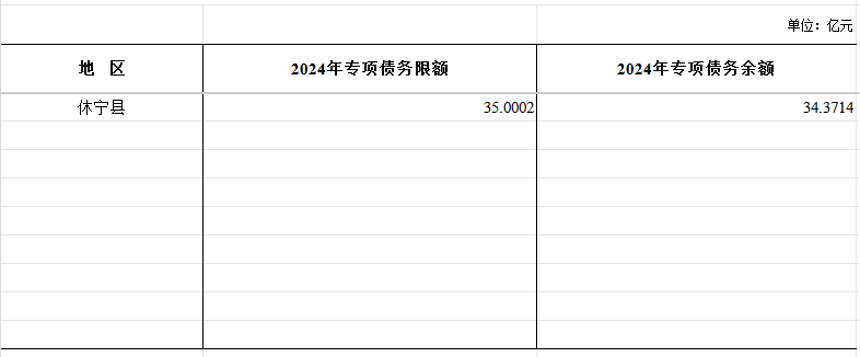 休宁县2024年地方政府专项债务限额和余额情况表