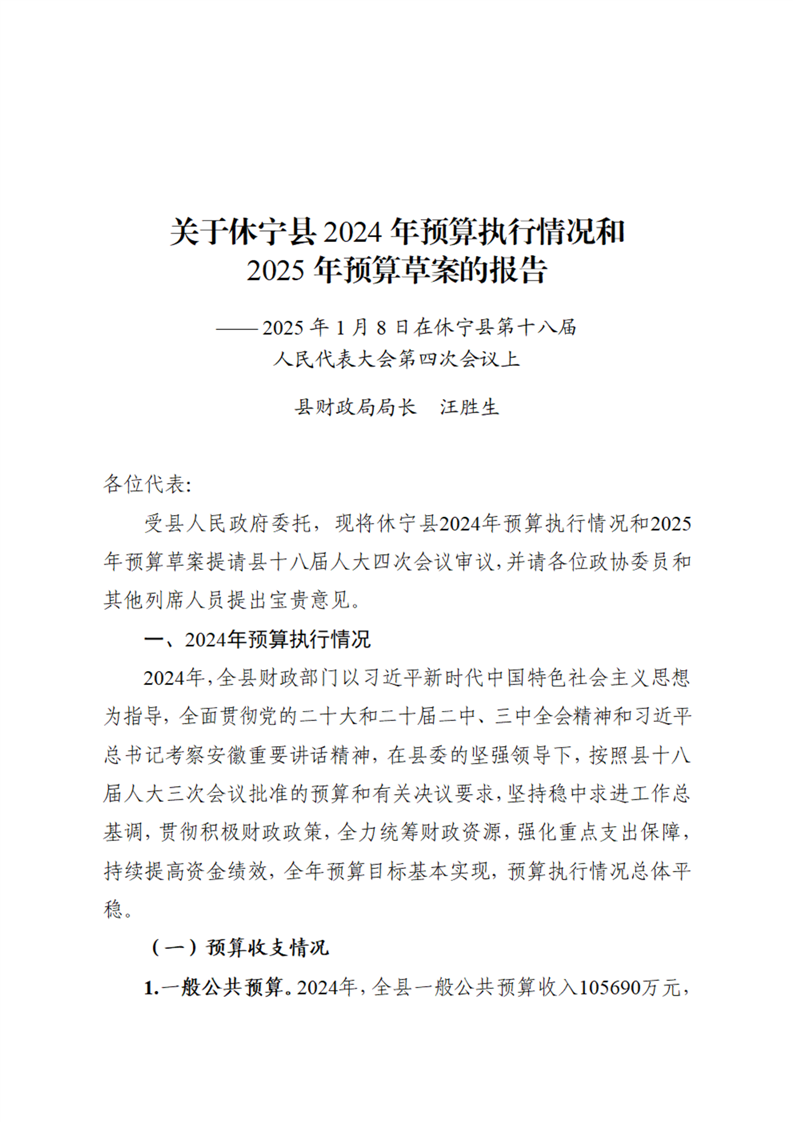 关于休宁县2024年预算执行情况和2025年预算草案的报告.pdf