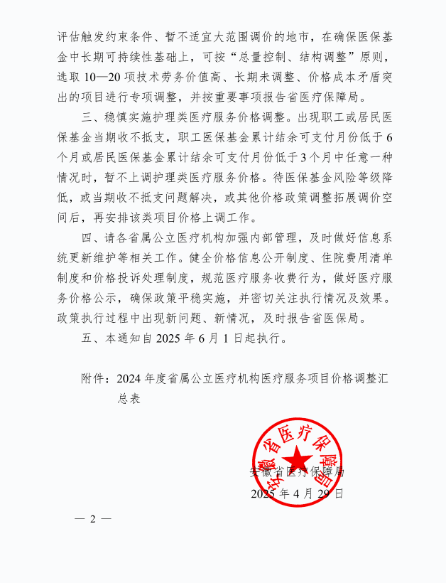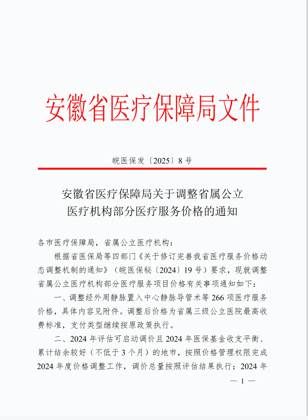 安徽省医疗保障局关于调整省属公立医疗机构部分医疗服务价格的通知