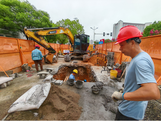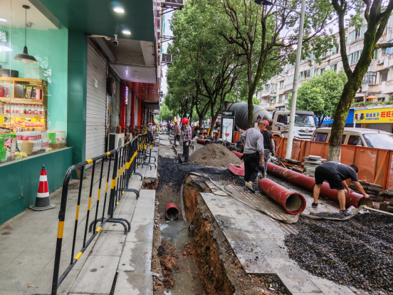 目前,休宁县城龙升街300多米长的人行道下,施工人员正冒着高温对雨污水管道进行更新改造。