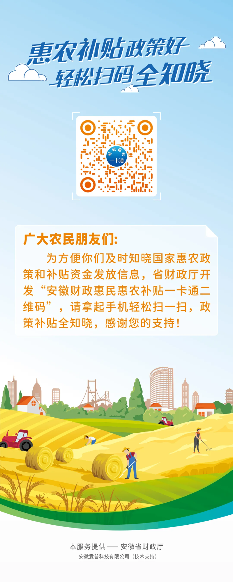 安徽财政惠民惠农补贴一卡通二维码(惠民惠农补贴查询渠道)