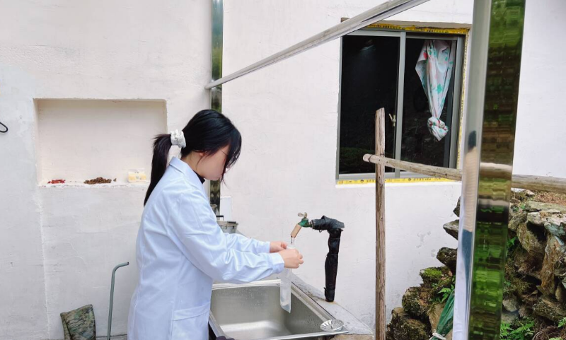 采样当天,采样人员携带物品到村集体供水设施附近的取水点,严格按照标准进行采样。