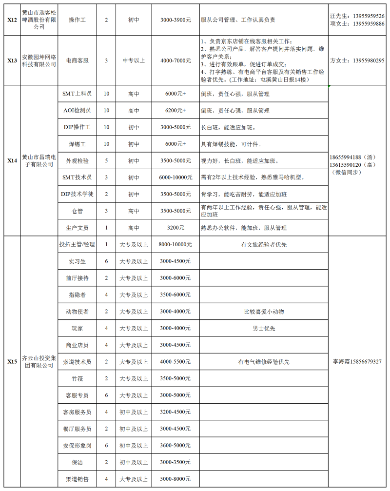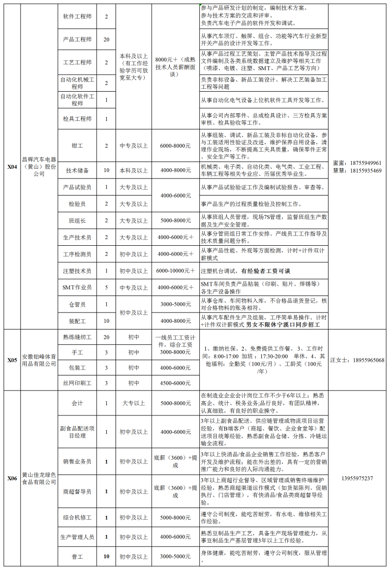 休宁县用工需求岗位信息汇总表(2025年12月)