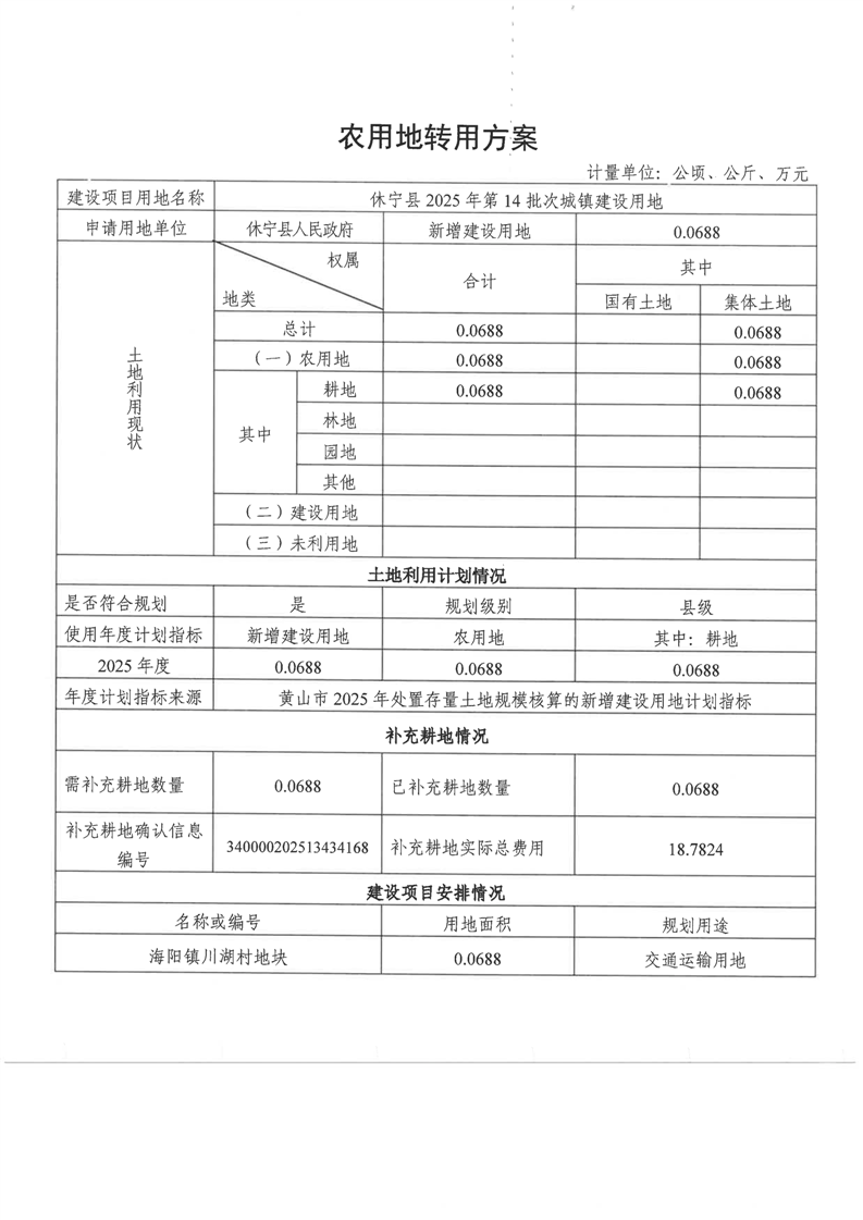 休宁县2025年第14批次城镇建设用地农转用方案