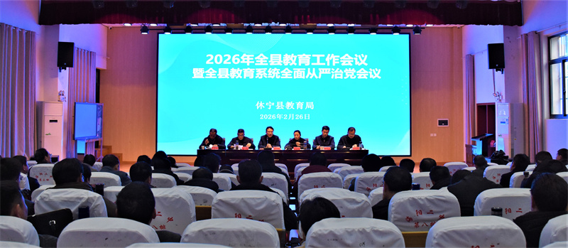 近日,休宁县召开2026年全县教育工作会议暨全县教育系统全面从严治党会议,传达学习中央、省、市、县相关会议精神,总结回顾2025年工作,全面部署2026年重点任务。县教育局领导班子出席会议,全县各级各类学校主要负责同志参加会议。