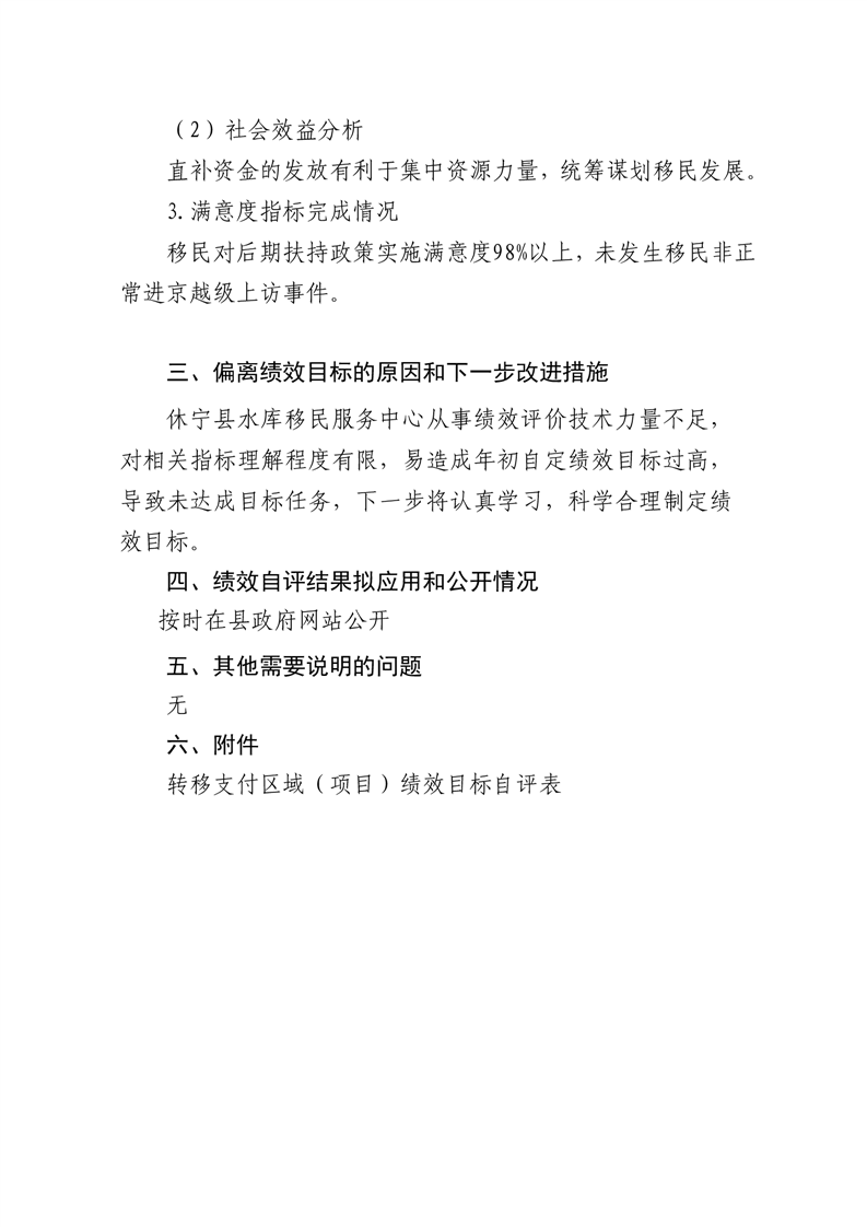 休宁县中央水库移民扶持基金和一般公共预算安排的大中型水库移民后期扶持资金转移支付区域(项目)绩效目标自评表 .pdf