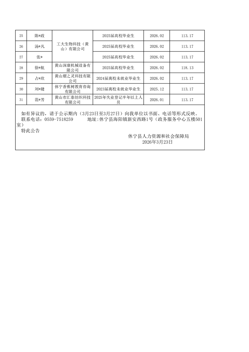 信息来源:休宁县人力资源和社会保障局