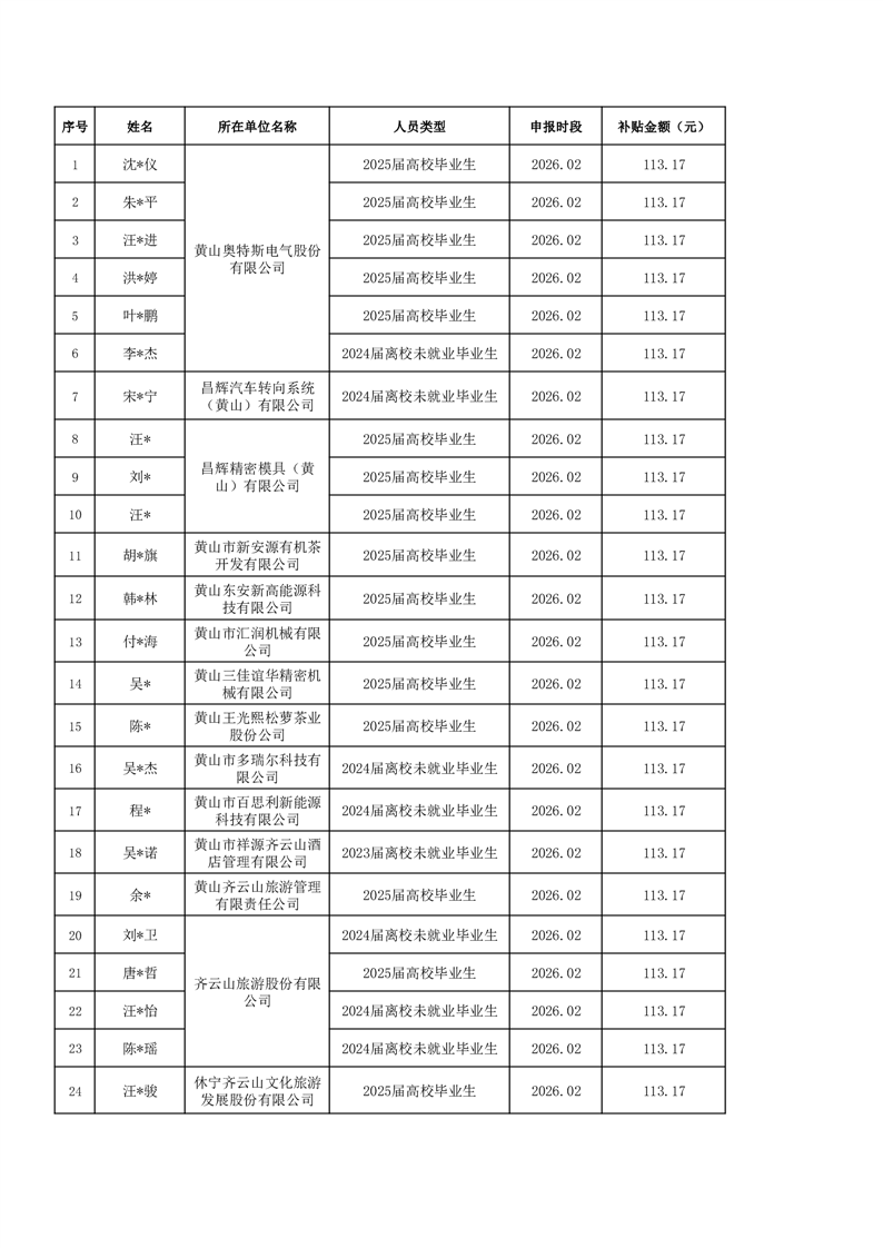 根据《关于进一步加强援企稳岗扩就业政策措施全力稳就业促发展的通知》(皖人社秘〔2025〕138号)规定,现将2025年重点行业领域社会保险补贴(第六批)信息予以公示。