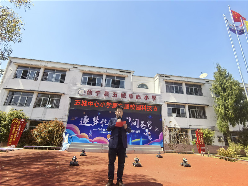 为激发同学们对科技的热情,培养他们的创新精神和实践能力,3月29日,休宁县五城中心小学开展第六届校园科技节活动。此次科技节以“逐梦航天,叩问苍穹”为主题,县科协主席王仕勤、教育局教研室主任汪军武、新教育学校副校长项繁荣及五城中心小学教育集团各成员校校长出席活动。