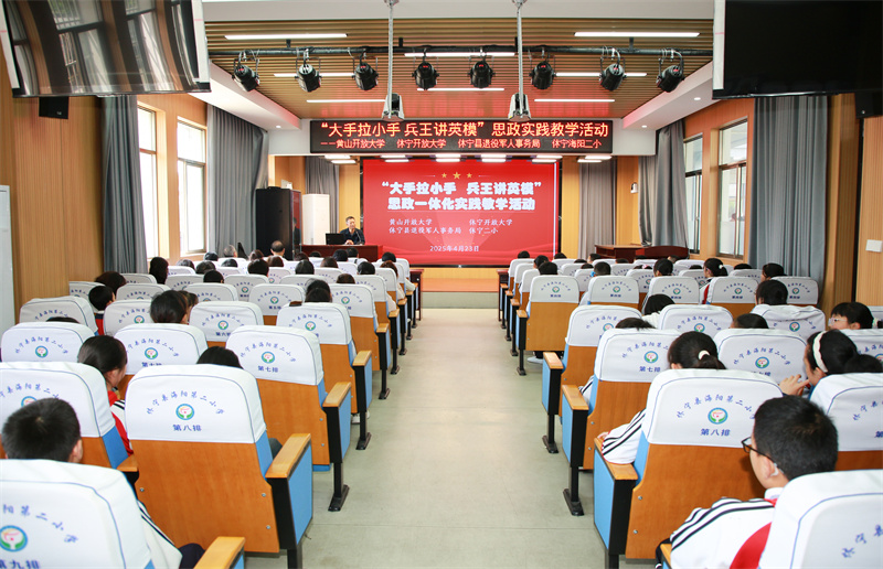 为增强队员们的国防意识, 4月23日,休宁县海阳第二小学迎来了一场意义非凡的分享活动。此次活动汇聚了黄山开放大学、休宁开放大学的师生代表,以及众多领导嘉宾,现场气氛热烈,洋溢着浓厚的爱国热情。