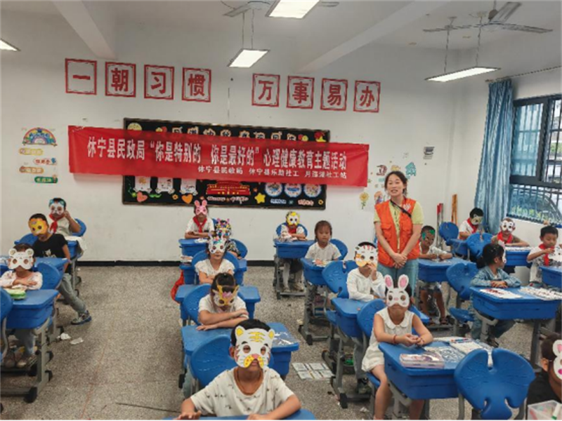 为助力儿童构建积极自我认知,10月14日下午,休宁县月潭湖中心小学携手乐助社会工作服务社,为一二年级学生带来“你是特别的,你是最好的”特色课后服务活动,让孩子们在丰富的环节中积极探索自我价值。