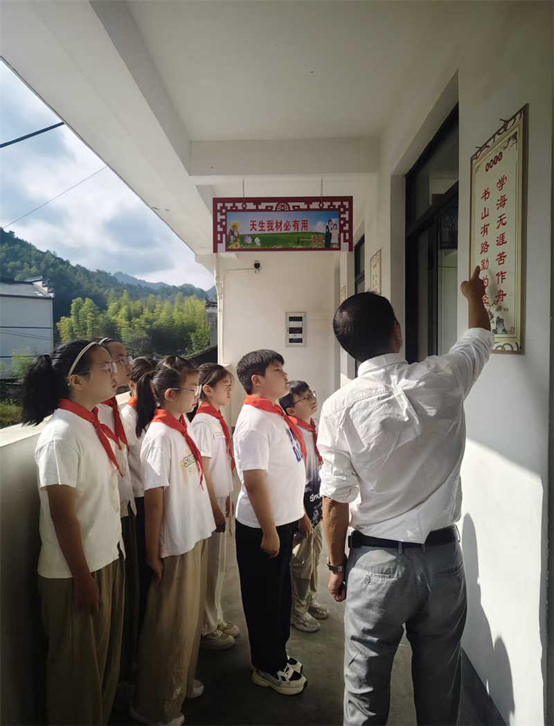 活动伊始,璜茅教学点负责人邹骏老师作为引导者,带领师生们开启这场与名人名言的深度对话。老师站在精心布置的展示区前,指着墙上镌刻的“学而不思则罔,思而不学则殆”,娓娓道来:“这是孔子留给我们的至理名言,它深刻地揭示了学习与思考之间相辅相成的关系。在我们的校园生活中,既要勤奋地汲取知识,也要善于思考,将所学内化为自己的智慧。”