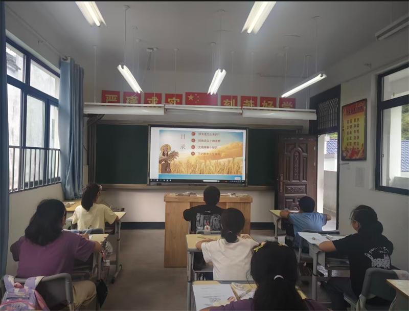岭南小学璜茅教学点开展了“小手牵大手 心系盘中餐”世界粮食日主题宣传活动。邹骏老师先引导学生观看《一粒米的旅行》动画短片、展示五谷作物图片等方式,让孩子们了解粮食生长过程,体会劳动人民的艰辛。然后观看部分孩子在家的饮食短片,引导学生说出自己的看法。有的说:“这个孩子太挑食了,尽选好的吃,只顾自己不顾他人。”有的说:“这个孩子太浪费粮食了,吃不完就倒掉。”有的说:“这孩子太没有吃相了,桌子、地上都是饭。”等。同学们各抒己见。紧接着引导学生说一说,那我们该怎样做才正确的呢?同学们纷纷表达自己的做法。通过活动的开展,帮助孩子们从小养成珍视粮食、懂得节约的习惯。