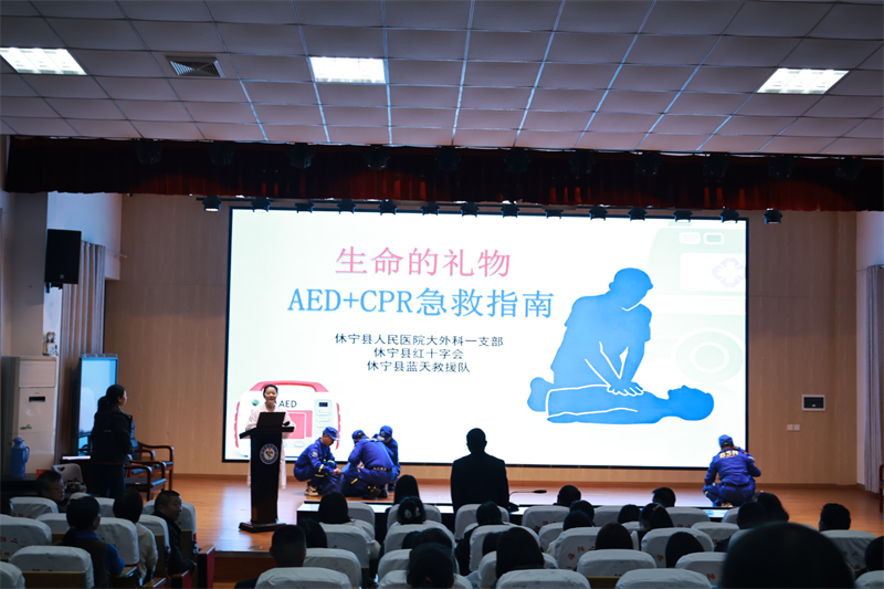 为全面落实健康第一的教育理念,提升校园应急救护能力。3月30日下午,休宁县人民医院、休宁县红十字会、休宁县蓝天救援队联合走进海阳二中,开展AED自动体外除颤仪使用专项培训。