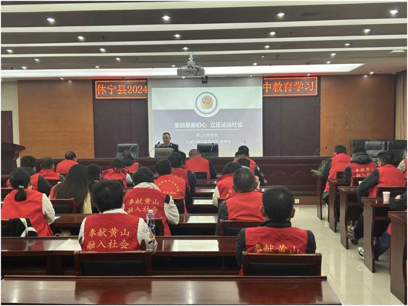 会后,监区民警代表为休宁县司法局社区矫正对象上一堂生动帮教课《重拾至善初心 立足法治社会》,进一步提升了社区矫正对象的认罪、悔罪意识,对有效预防和减少社区矫正对象重新违法犯罪、提升教育矫正质量具有积极作用。
