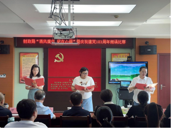 为庆祝建党103周年,继承和发扬党的光荣传统和优良作风。7月5日,县财政局以深化党纪学习教育为契机,开展了主题为“清风廉行,纪在心间”暨庆祝建党103周年朗诵比赛。