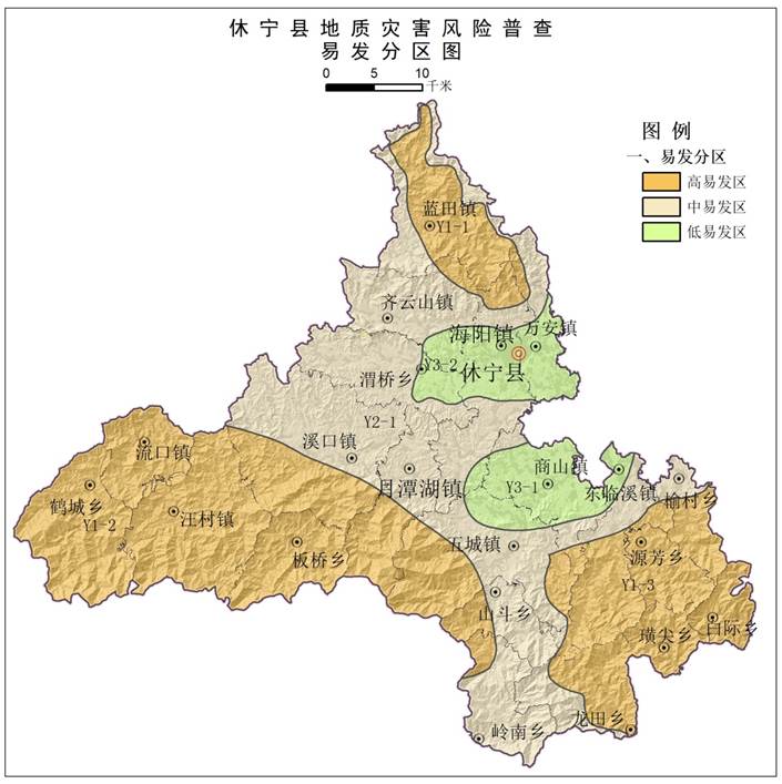 图1 休宁县地质灾害易发性评图
